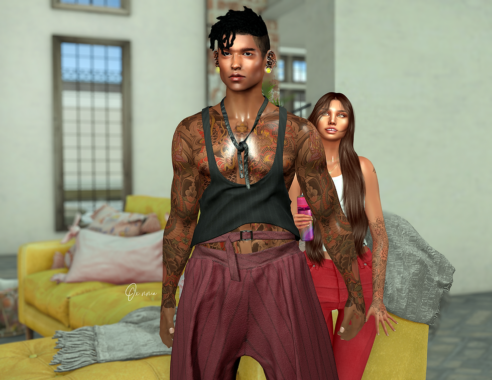 ↓↓ On a eu envie de faire une photo pour notre album souvenir et décorer notre maison, cette fois mon ami a remis son apparence habituelle et porte le skin avec sa Lelutka et son propre shape↓↓